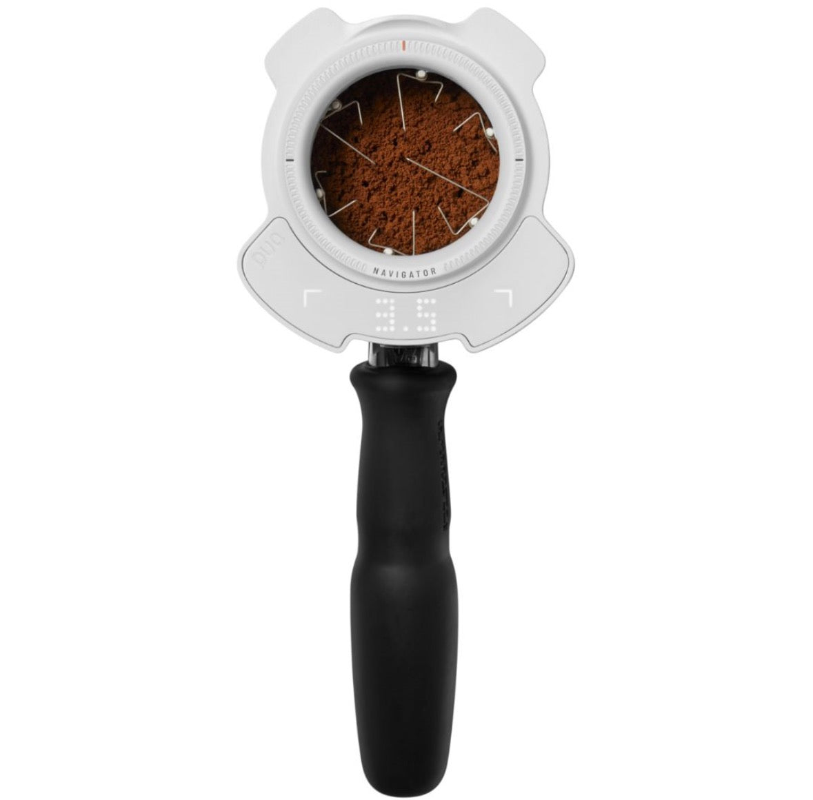 The PUQ Prep Navigator is an innovative, automated (WDT-style) distribution tool that standardizes the grind distribution process to achieve a more consistent puck structure and more reliable extractions. It simplifies the otherwise manual needle distribution step with a true one-touch mechanism.