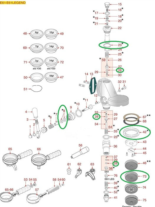 Kit de joints Bezzera – Groupe de brassage Faema E61 | Pièces détachées